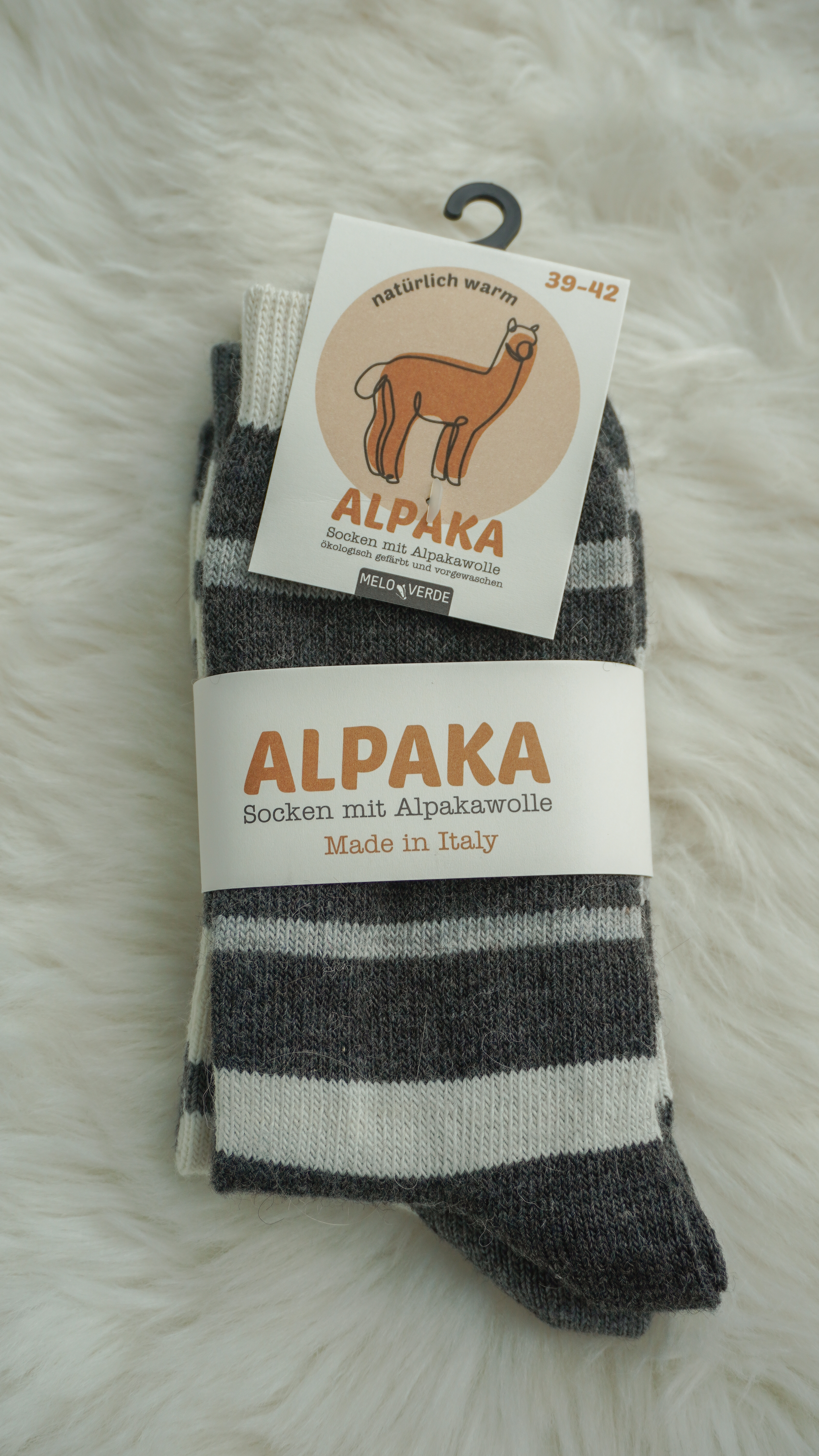 2-pack alpaka sokken gestreept antraciet/grijs/ecru